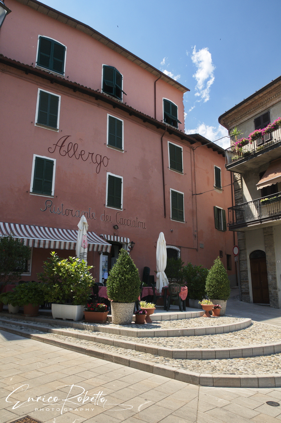 Bobbio, Il Ristorante Cacciatori in Piazza Duomo, Piacenza, Italia ----- Bobbio, the Cacciatori Restaurant in Piazza Duomo, Piacenza, Italy