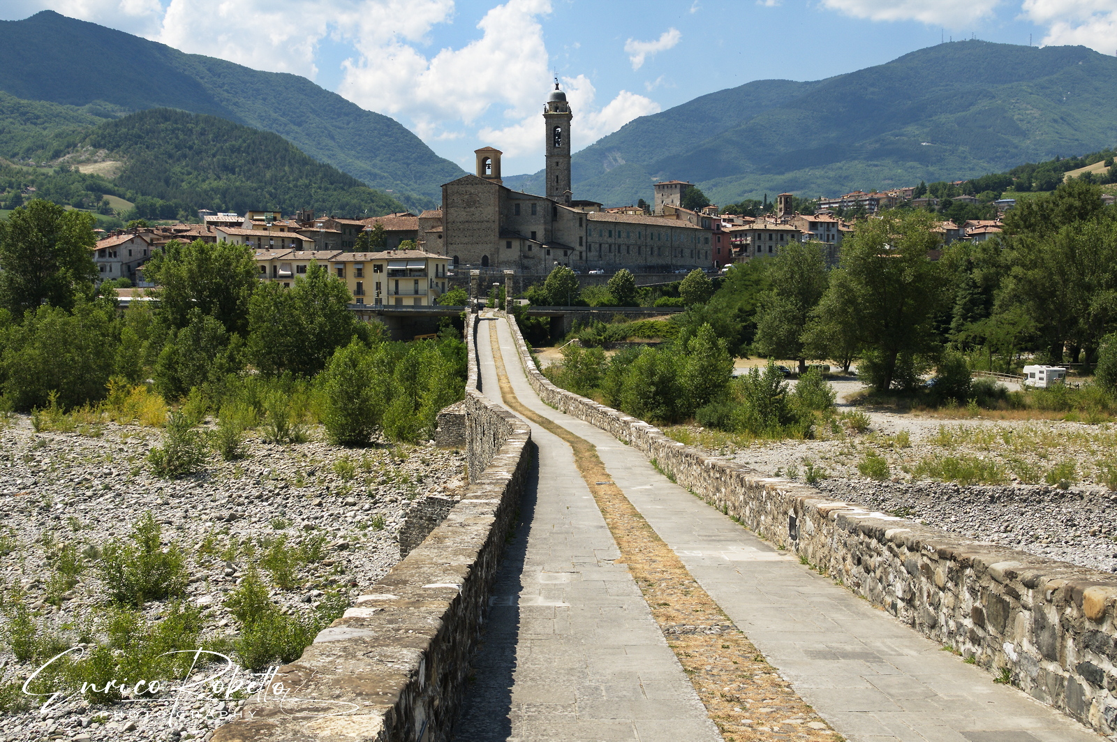 Bobbio, Il Ponte Gobbo sul Fiume Trebbia, costruito nel XII Secolo su una base risalente al VII Secolo, Piacenza, Italia ----- Bobbio, the Bridge called Gobbo (Hunchback) over the River Trebbia, built in the XIIth Century on a seventeenth-century base, Piacenza, Italy