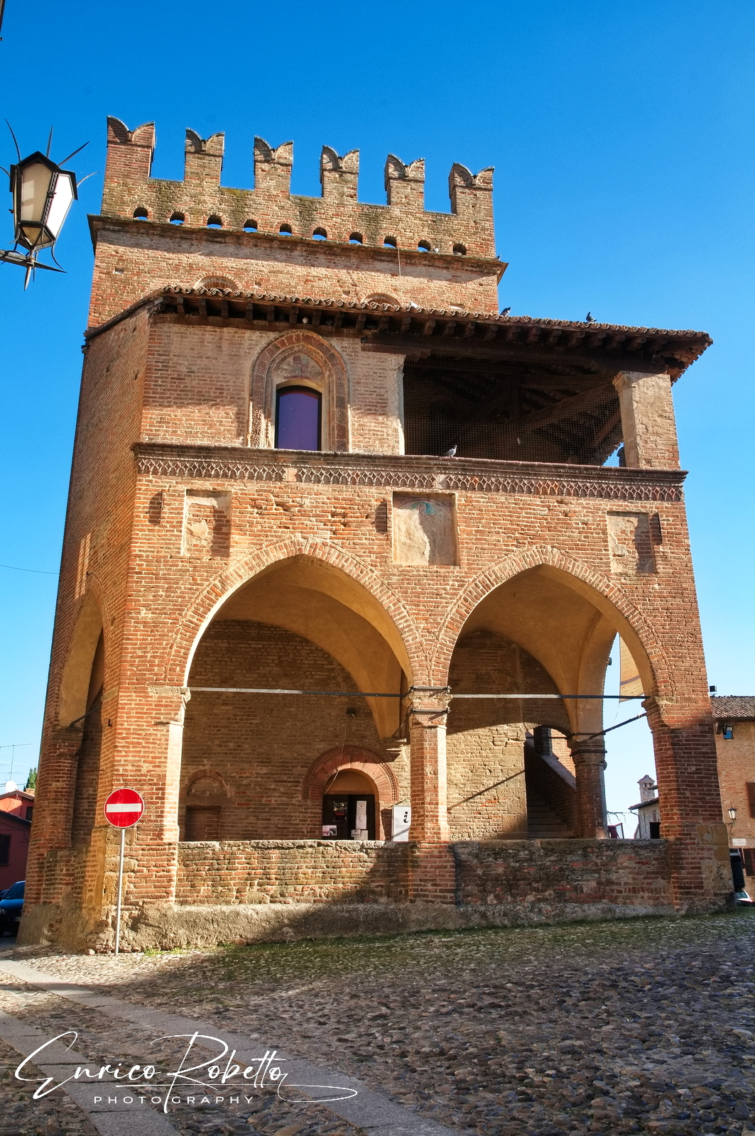 Castell'Arquato, Piazza del Municipio, il Palazzo del Podestà XIII Secolo visto da Via Antonio Vassalli, Piacenza, Italia ----- Castell'Arquato, Town Hall Square, the 13th Century Podestà Palace seen from Via Antonio Vassalli, Piacenza, Italia.
