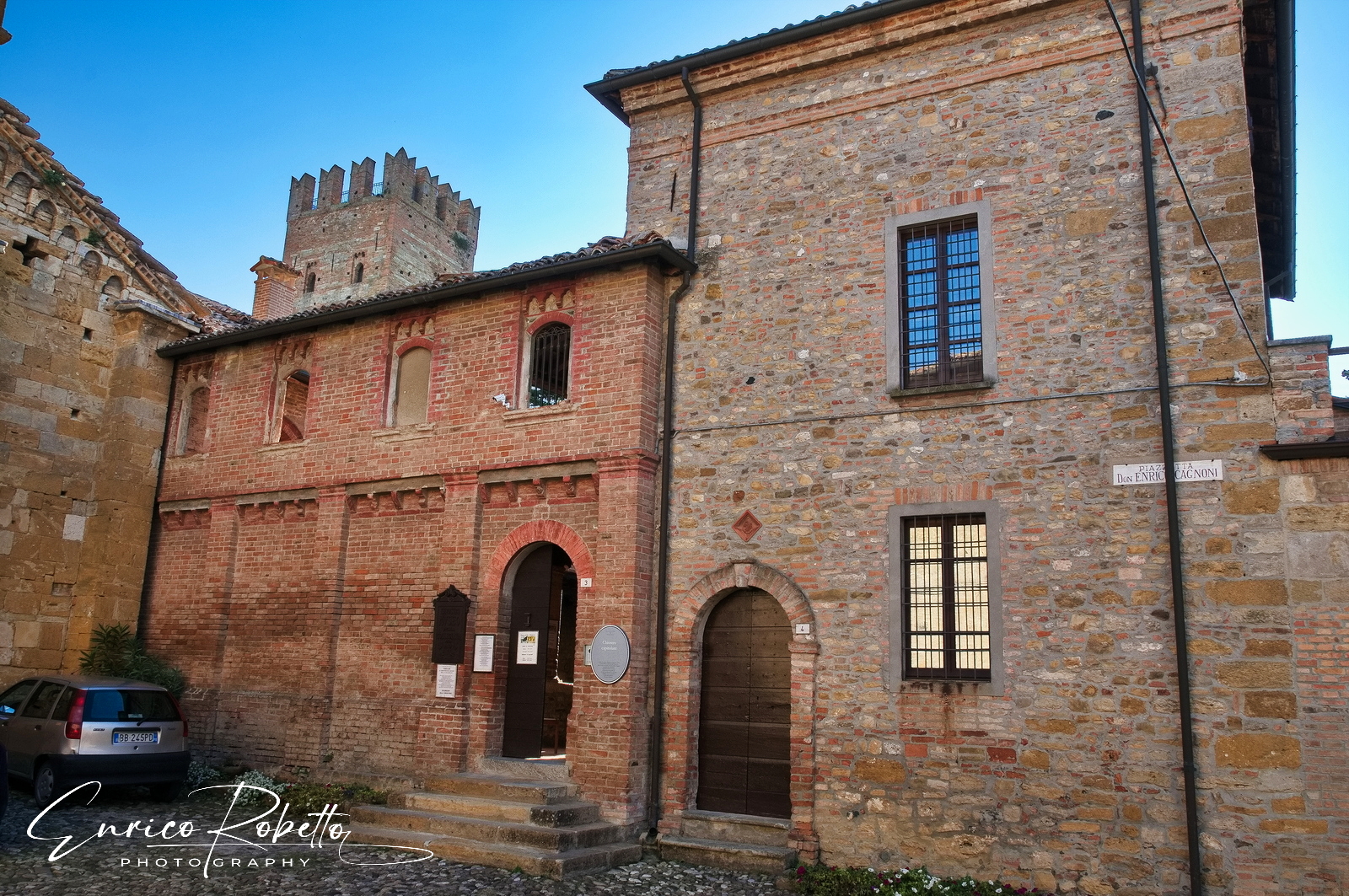 Castell'Arquato, Piazzetta Don Enrico Cagnoni, ingresso del Chiostro Capitolare, Piacenza, Italia ----- Castell'Arquato, Piazzetta Don Enrico Cagnoni, entrance to the Capitular Cloister, Piacenza, Italia.