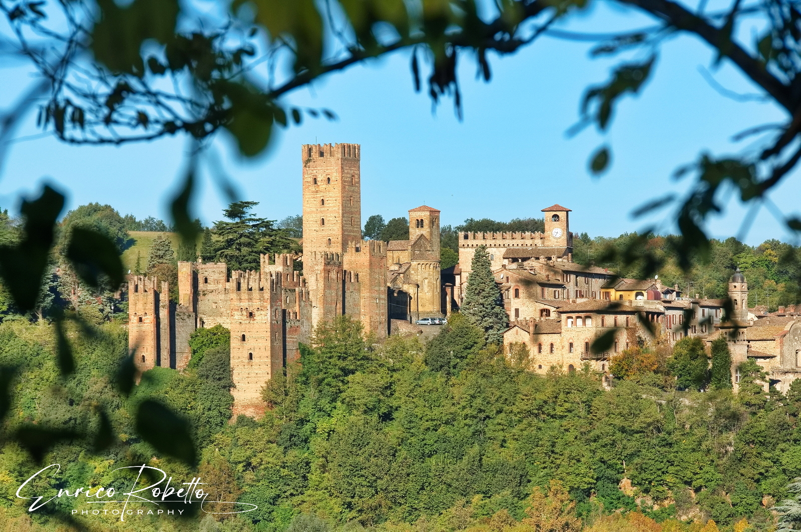 Castell'Arquato, la Rocca Viscontea XIII Secolo, vista da Strada Bacedasco, Piacenza, Italia ----- Castell'Arquato, the 13th Century, Visconti Fortress, seen from Strada Bacedasco, Piacenza, Italy.