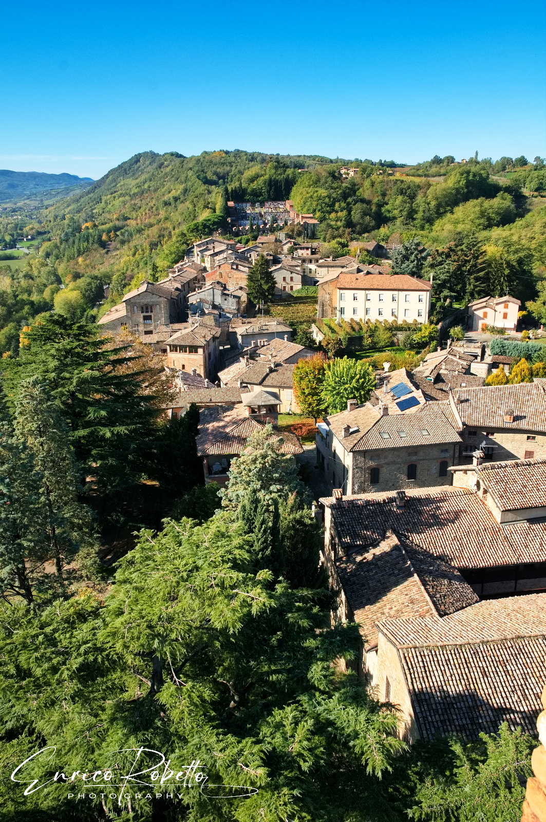Castell'Arquato, Giardini Giovanni Paolo II, panorama dalla sommità della Rocca Viscontea, Piacenza, Italia ----- Castell'Arquato, Giovanni Paolo II Gardens, panorama from the top of the Rocca Viscontea, Piacenza, Italy