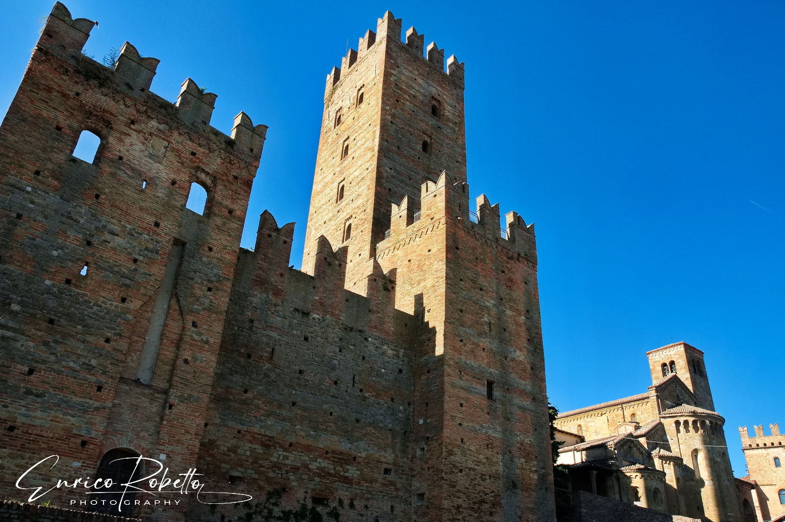 Castell'Arquato, la Rocca Viscontea XIII Secolo, vista da Via Magno, Piacenza, Italia ----- Castell'Arquato, the Visconti Fortress 13th Century, seen from Via Magno, Piacenza, Italy