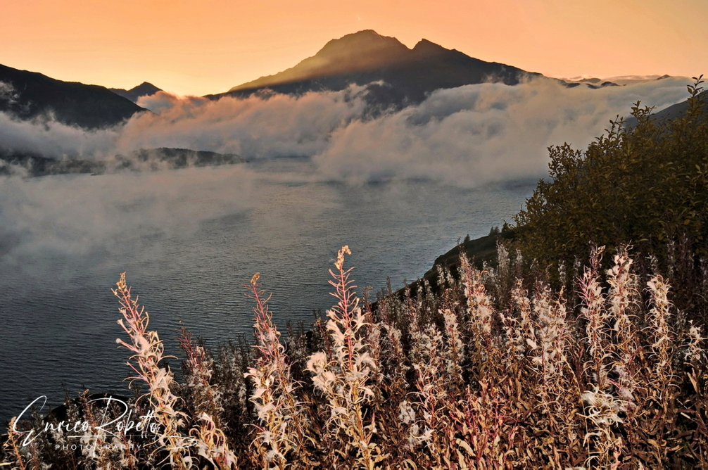 Tramonto sul Lago del Moncenisio, 1974 m. Savoia, Francia ----- Sunset on Lake Mont Cenis, 1974 m. Savoy, France.