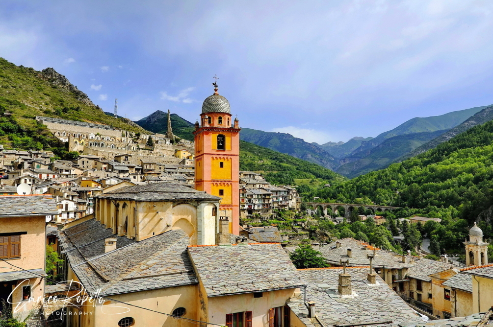Panorama di Tende con la Collegiata di Notre Dame de Assomption, Tende, Alpi Marittime, Francia ----- Panorama of Tende with the Collegiate of Notre Dame de Assomption, Tende, Maritime Alps, France
