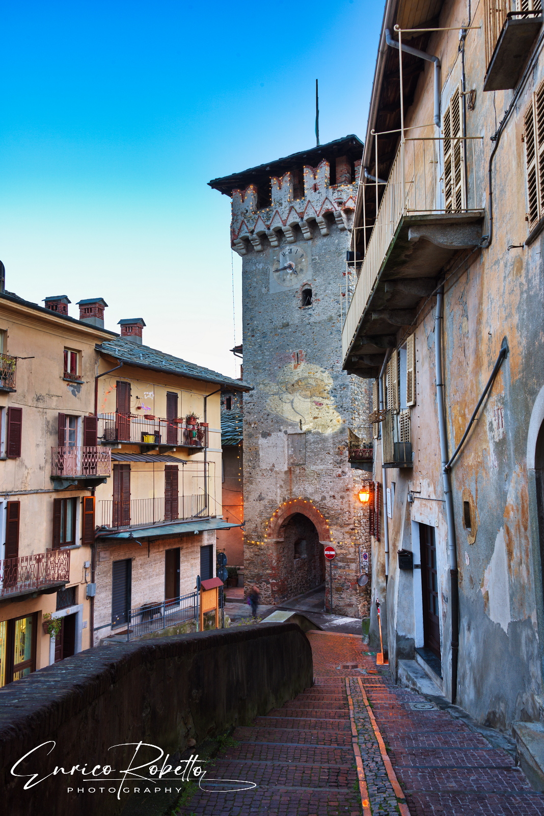 Lanzo Torinese, la Torre di Aymone di Challant, XIII Secolo vista da Via Sant'Ignazio, Torino, Italia ----- Lanzo Torinese, the Tower of Aymone di Challant, 13th Century seen from Via Sant'Ignazio, Turin, Italy