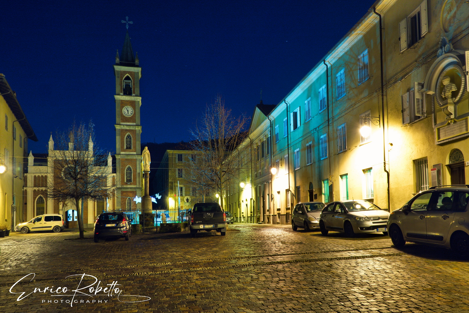 Lanzo Torinese, Piazza Albert, la Chiesa di San Pietro in Vincoli, XI Secolo, Torino, Italia ----- Lanzo Torinese, Albert Square, the Church of San Pietro in Vincoli, 11th century, Turin, Italy