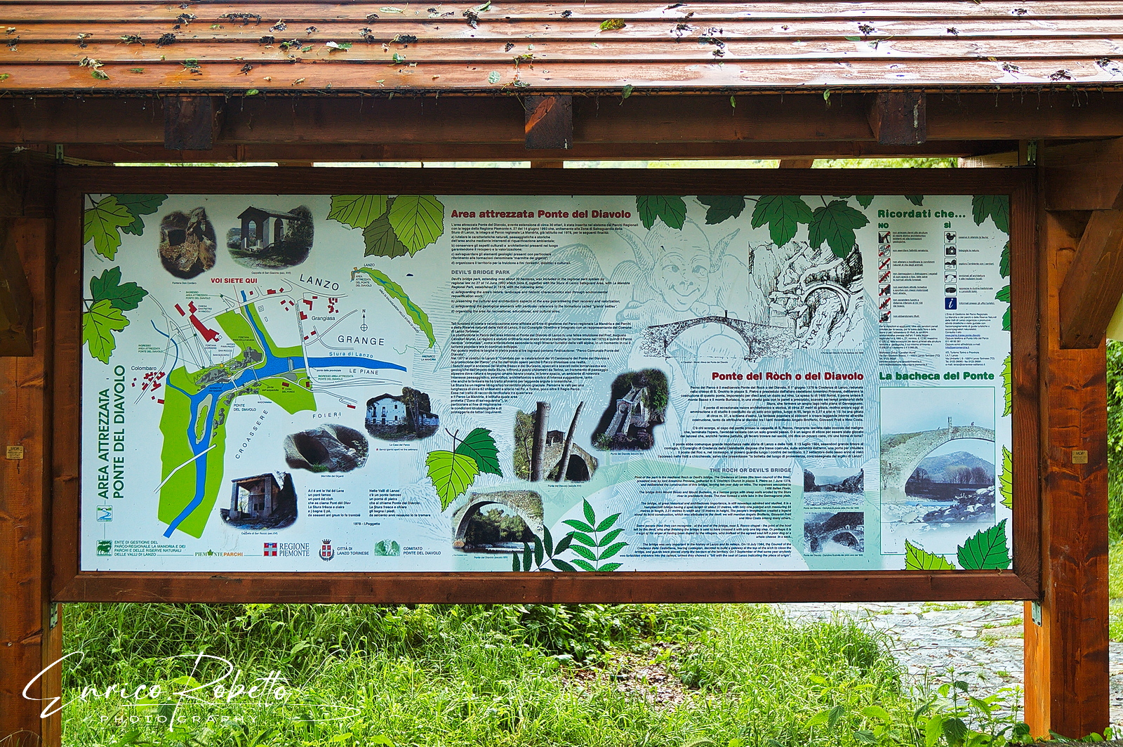 Lanzo Torinese, Certello informativo del Parco del Ponte del Diavolo, Torino, Italia ----- Lanzo Torinese, information board of the Devil's Bridge Park, Torino, Italy