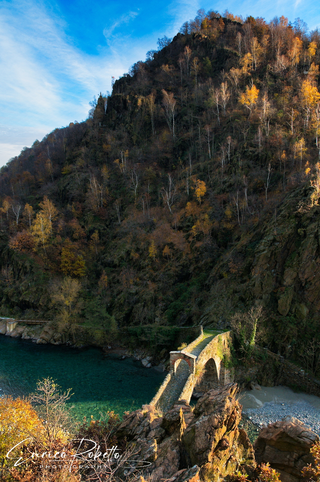 Lanzo Torinese, Parco Ponte del Diavolo, il ponte del Diavolo, Secolo XIII visto dalla Cappella di San Giacinto, Torino, Italia ----- Lanzo Torinese, Devil's Bridge Park, the Devil's Bridge, 13th century seen from the Chapel of San Giacinto, Turin, Italy