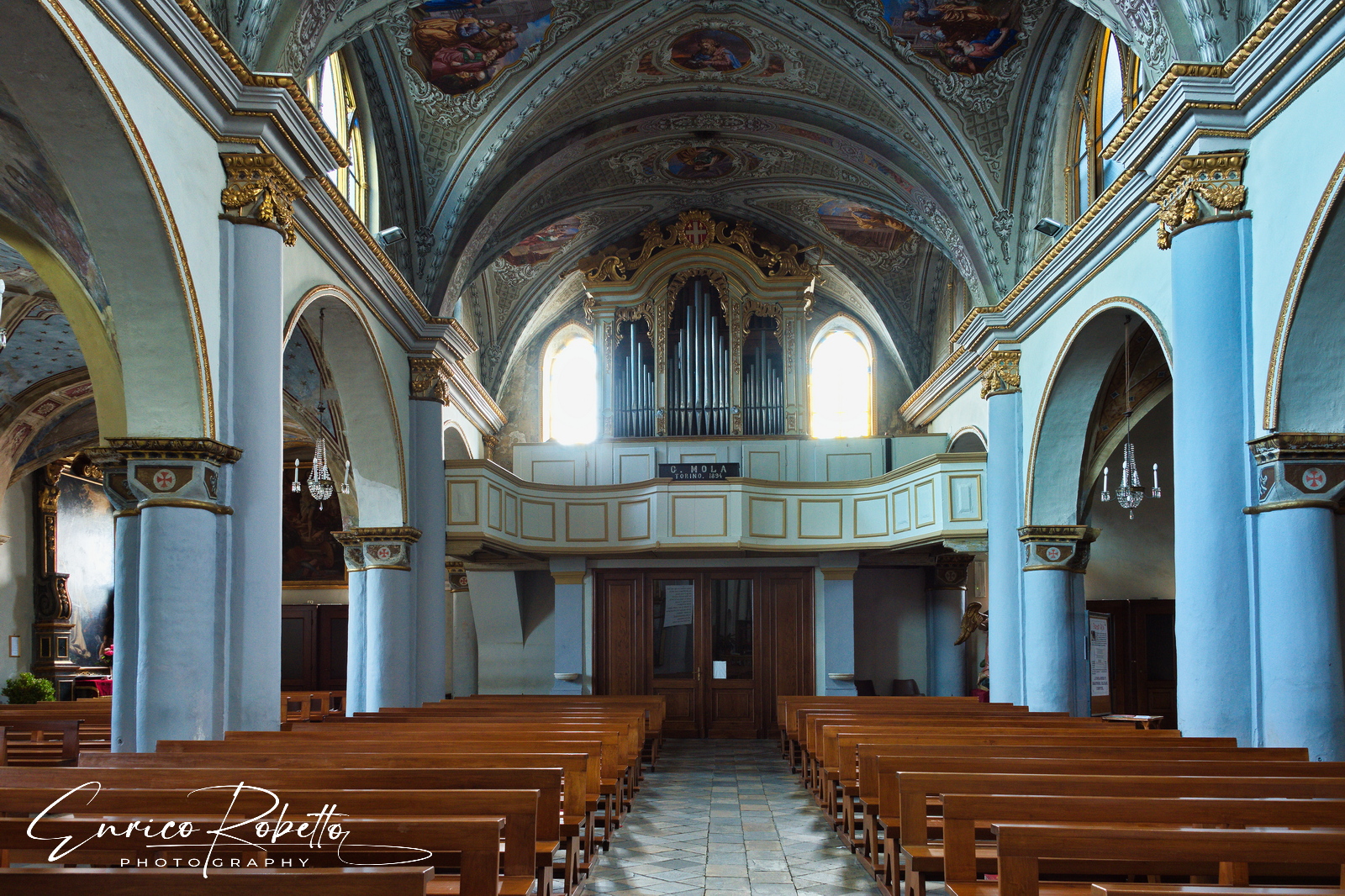 Lanzo Torinese, Piazza Albert, interno della Chiesa di San Pietro in Vincoli,l'Organo XVI Secolo, Torino, Italia ----- Lanzo Torinese, Piazza Albert, inside of the Church of San Pietro in Vincoli, the Organ, XVIth Century, Turin, Italy
