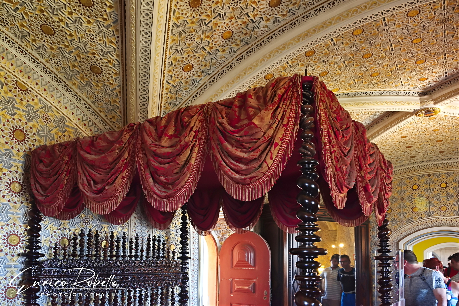 Sale interne del Palacio da Pena, XVIII Secolo, letto a baldacchino, Sintra, Lisbona, Portogallo ----- Interior rooms of the Palacio da Pena, 18th Century, four-poster bed, Sintra, Lisbon, Portugal
