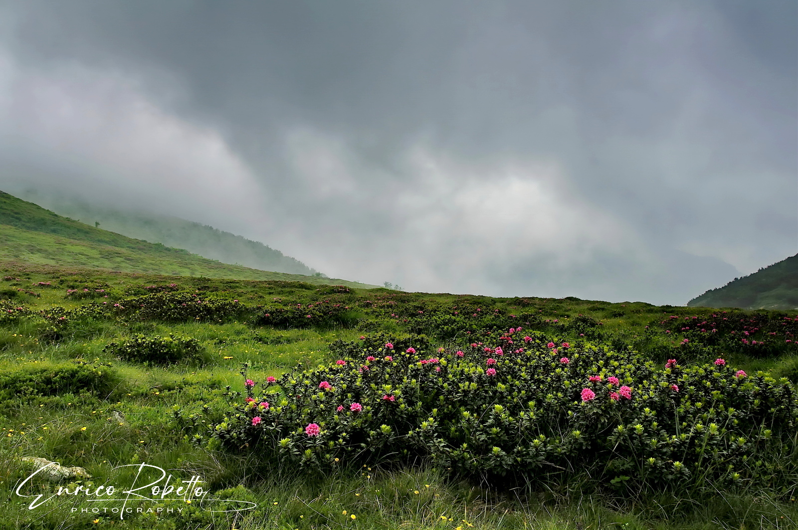 Fioritura di Rododendri al Colle del Colombardo, 1888 m., Lemie, Torino, Italia ----- Flowering of Rhododendrons at the Colle del Colombardo, 1888 m., Lemie, Turin, Italy