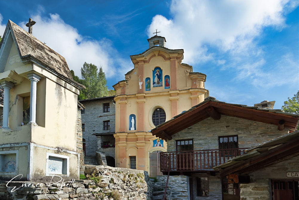Borgata Marsaglia, 1300 m. il Santuario di Marsaglia, Secolo XVII, Monastero di Lanzo, Torino, Piemonte, Italia ----- Marsaglia Village, 1300 m. the Sanctuary of Marsaglia, 17th Century, Lanzo Monastery, Turin, Piedmont, Italy