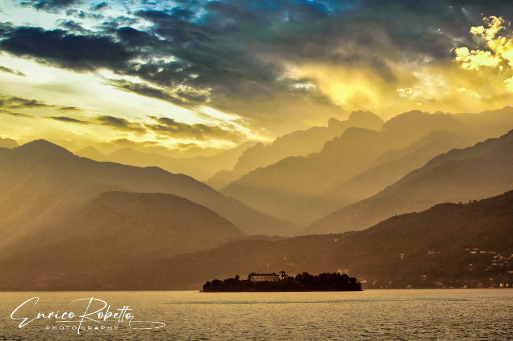 Lago Maggiore, Isole Borromee, l'Isola Madre al tramonto, Stresa, VCO, Italia ----- Lake Maggiore, Borromee Islands, the Isola Madre at sunset, Stresa, VCO, Italy