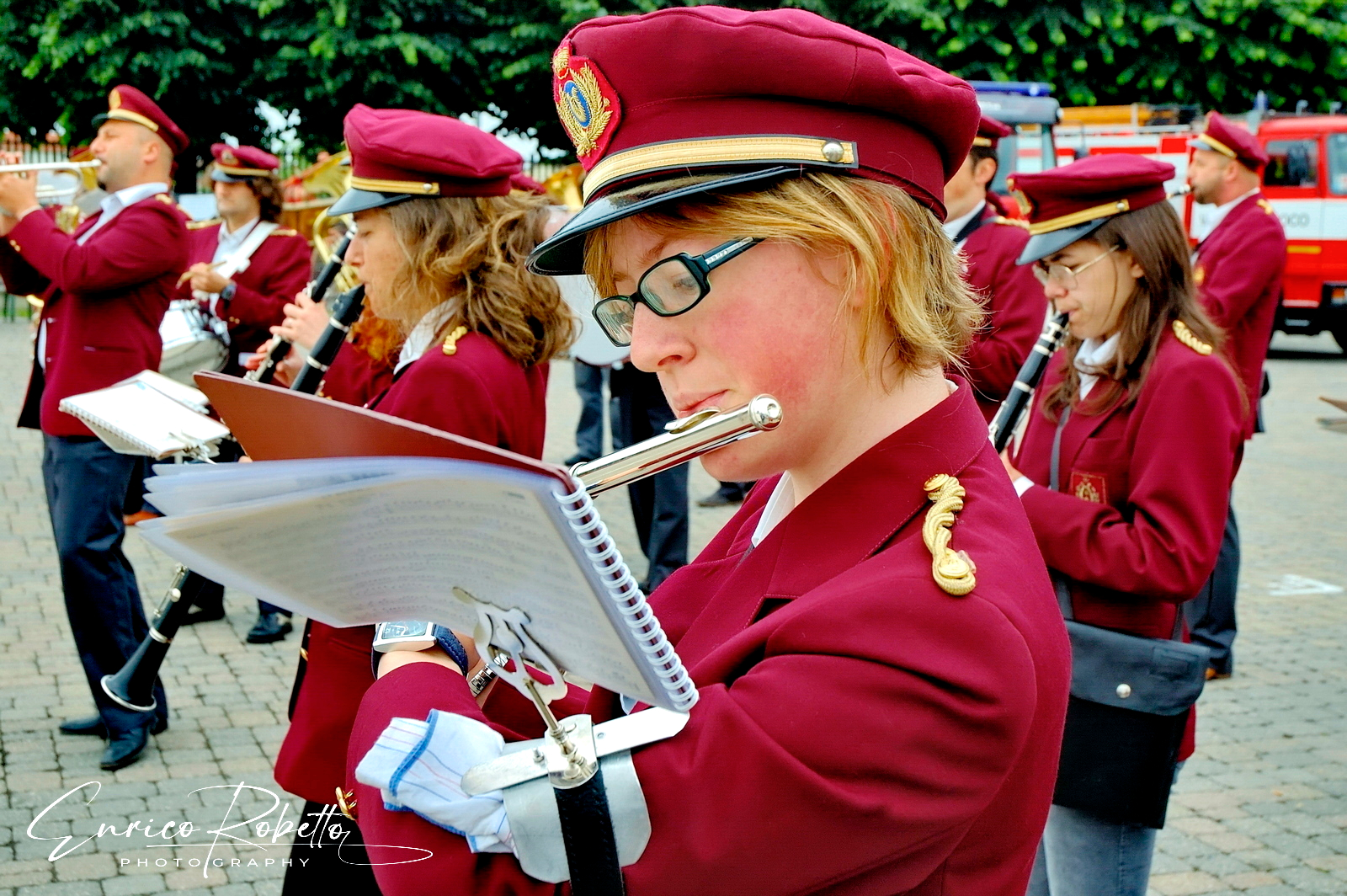 Piazza Marconi, la Banda Filarmonica La Novella suona in occasione dell' 8° Rassemblement del Comitato di tutti i San Maurizio d'Europa, San Maurizio Canavese, Piemonte, Torino, Italia ----- Marconi Square, the Novella Philharmonic Band plays on the occasion of the 8th Rassemblement of the Committee of all the San Maurizio of Europe, San Maurizio Canavese, Piedmont, Turin, Italy