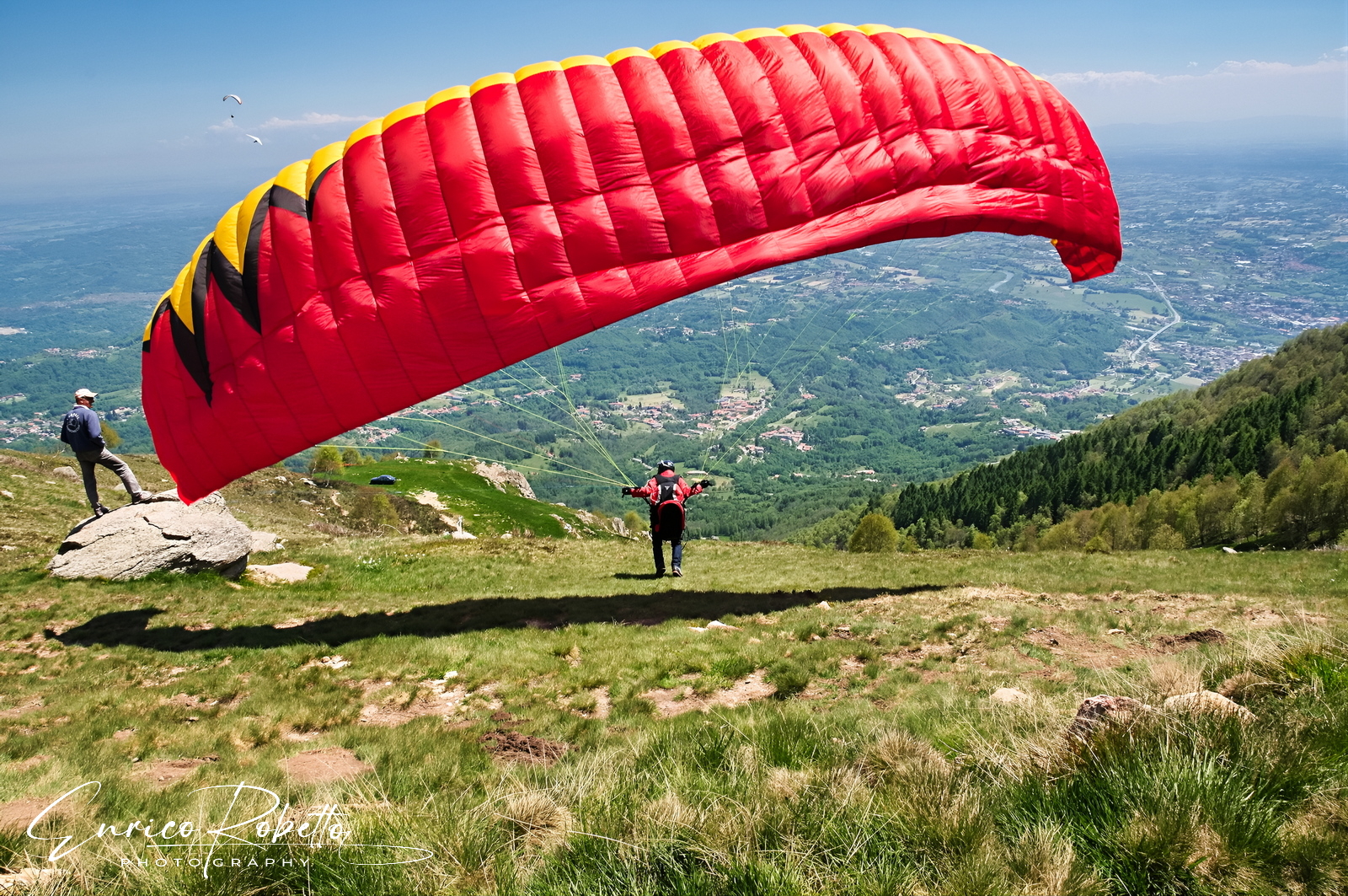 Via Pian del Lupo, Parapendio nei pressi del Santuario di Santa Elisabetta, 1220 m. Colleretto Castelnuovo, Torino, Italia ----- Pian del Lupo Street, Paragliding near the Sanctuary of Santa Elisabetta, 1220 m. Colleretto Castelnuovo, Turin, Italy
