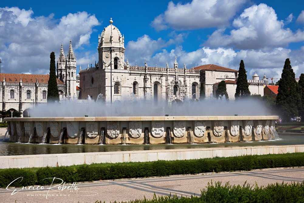 Jardim da Praça do Império, sullo sfondo il Mosterio dos Jeronimos, XV Secolo, Frazione Santa Maria de Belém, Lisbona, Portogallo ----- Jardim da Praça do Império, in the background the Mosteiro dos Jeronimos, XV Century, Santa Maria de Belém district, Lisbon, Portugal