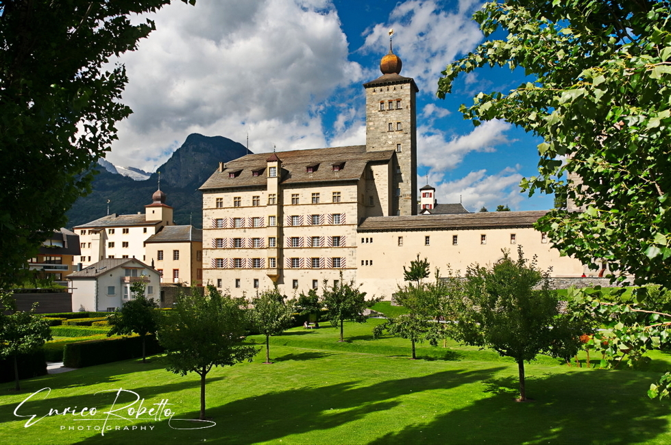 Neue Simplonstrasse, il Castello Stockalper, XVII Secolo, Briga, Cantone Vallese, Svizzera ----- Neue Simplonstrasse, the Stockalper Castle, XVIIth Century, Brig, Valais Canton, Switzerland