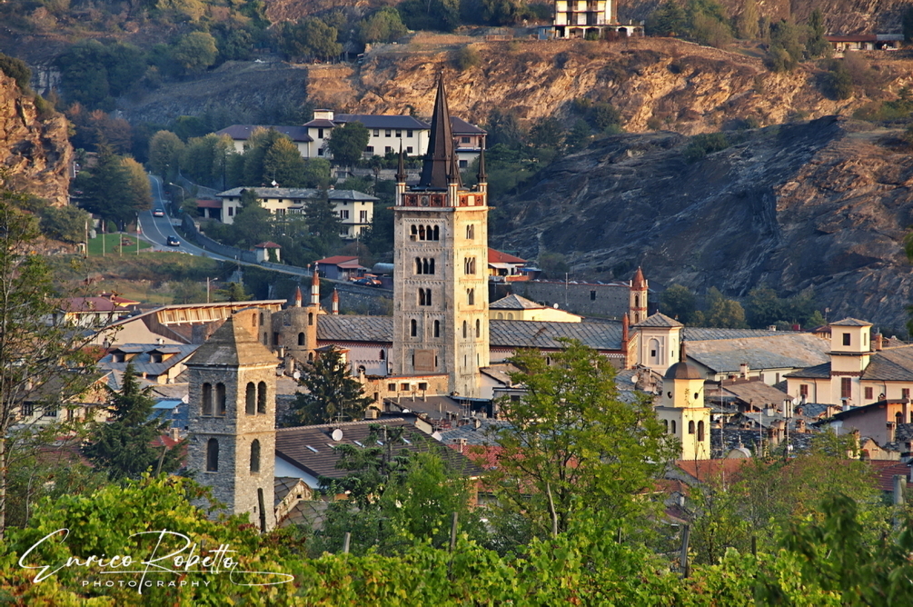 Alba sulla Cittadina di Susa (Segusium), da millenni crocevia dei diversi itinerari transalpini, Valle di Susa, Torino, Italia ----- Sunrise on the small town of Susa (Segusium), for millennia crossroads of the various transalpine routes, Susa Valley, Turin, Italy