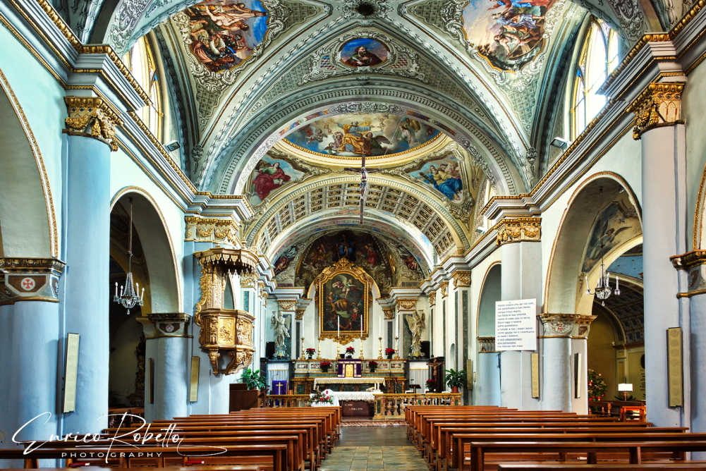 Piazza Albert, interno della Chiesa di San Pietro in Vincoli, Navata centrale, XVI Secolo, Lanzo Torinese, Torino, Piemonte, Italia ----- Piazza Albert, inside of the Church of San Pietro in Vincoli, central Nave, XVIth Century, Lanzo Torinese, Turin, Piedmont, Italy