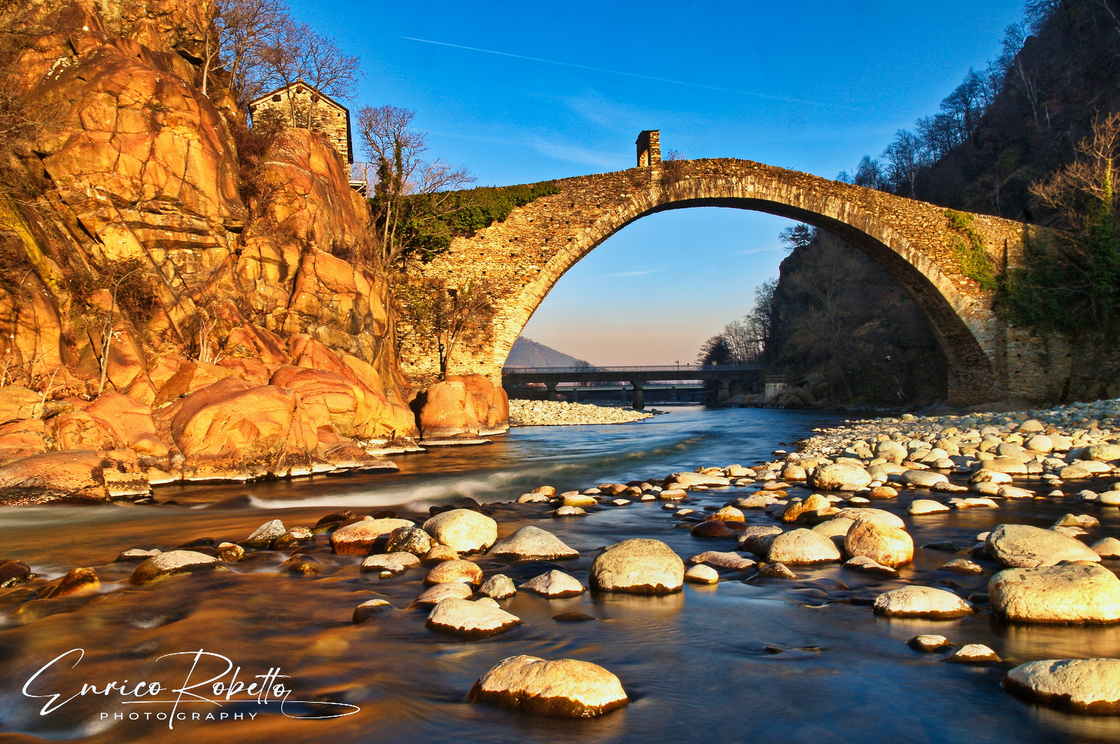 Il Ponte del Diavolo al tramonto, XIV Secolo, Lanzo Torinese, Torino, Piemonte, Italia ----- The Devil's Bridge at sunset, XIV Century, Lanzo Torinese, Turin, Piedmont, Italy