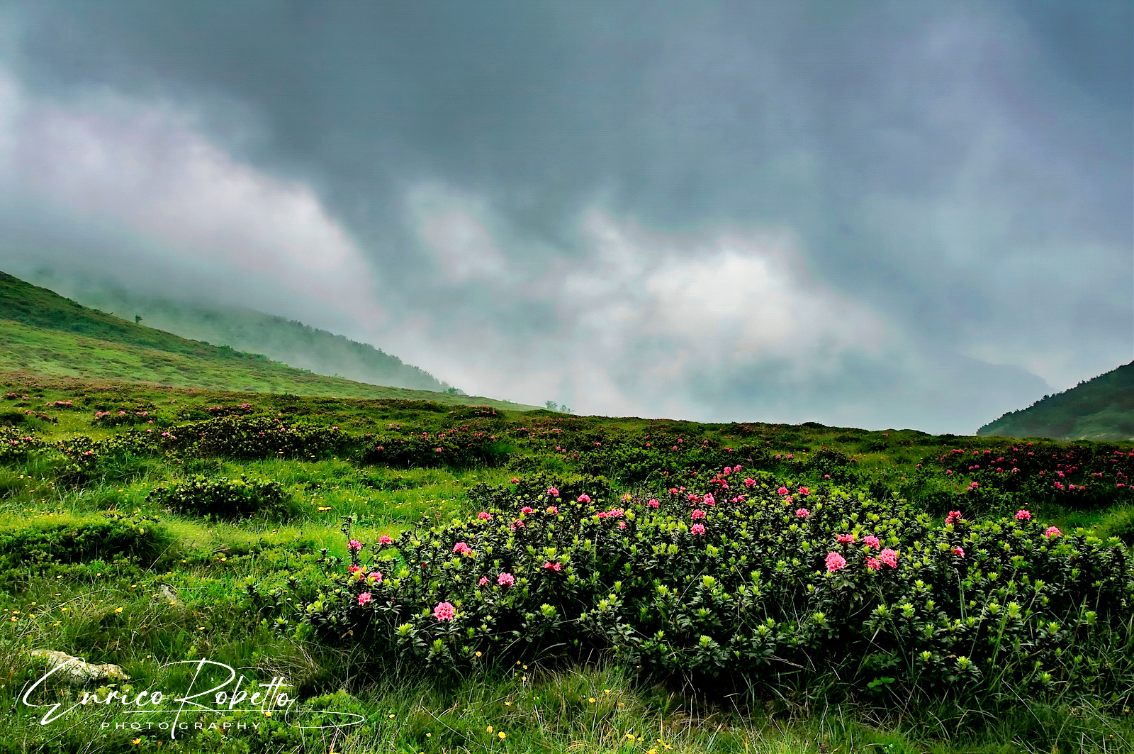 Fioritura di Rododendri al Colle del Colombardo, 1888 m., Lemie, Torino, Piemonte, Italia ----- Flowering of Rhododendrons at the Colle del Colombardo, 1888 m., Lemie, Turin, Piedmont, Italy