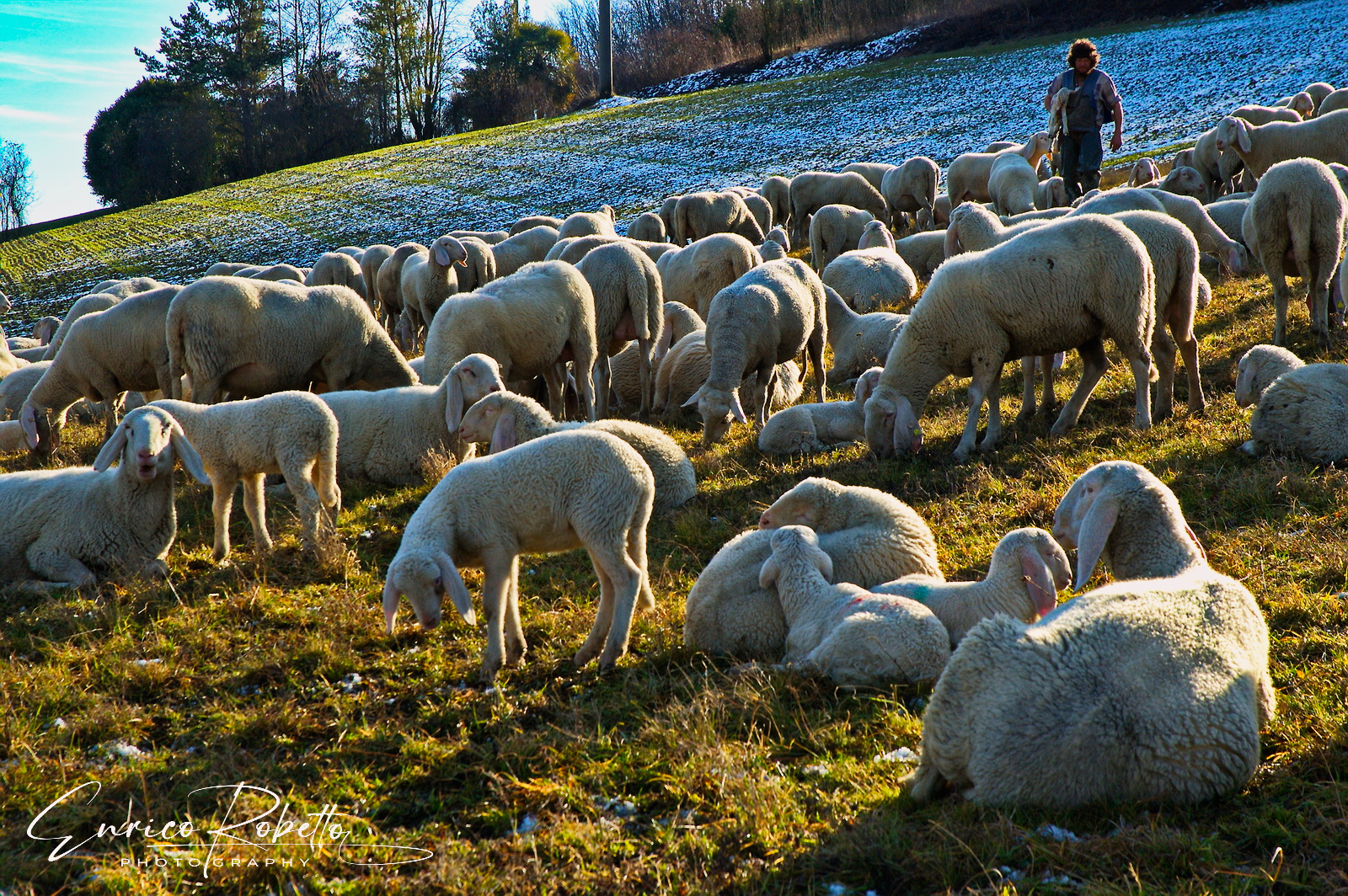 Gregge di pecore nei pressi di Berzano San Pietro, Asti, Piemonte, Italia ----- Flock of sheep near Berzano San Pietro, Asti, Piedmont, Italy