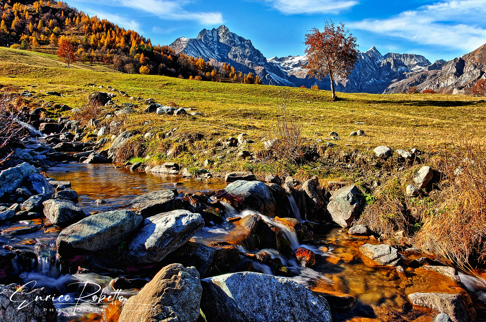 Usseglio,Autunno al Pian Benot, 1624 m. a sx il Monte Lera, 3355 m.Valle di Viù, Torino, Piemonte, Italia ----- Usseglio, Autumn at Pian Benot, 1624 m. on the left Monte Lera, 3355 m. Valle di Vìù, Turin, Piedmont, Italy