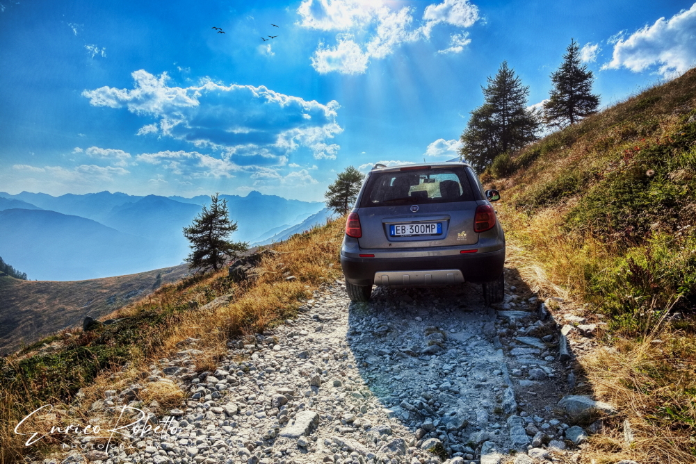 Tra la Valle Varaita e la Valle Maira, salendo la strada sterrata verso il Colle Sampeyre, 2284 m. Cuneo, Piemonte, Italia ----- Between Valle Varaita and Valle Maira, climbing the dirt road towards Colle Sampeyre, 2284 m. Cuneo, Piedmont, Italy
