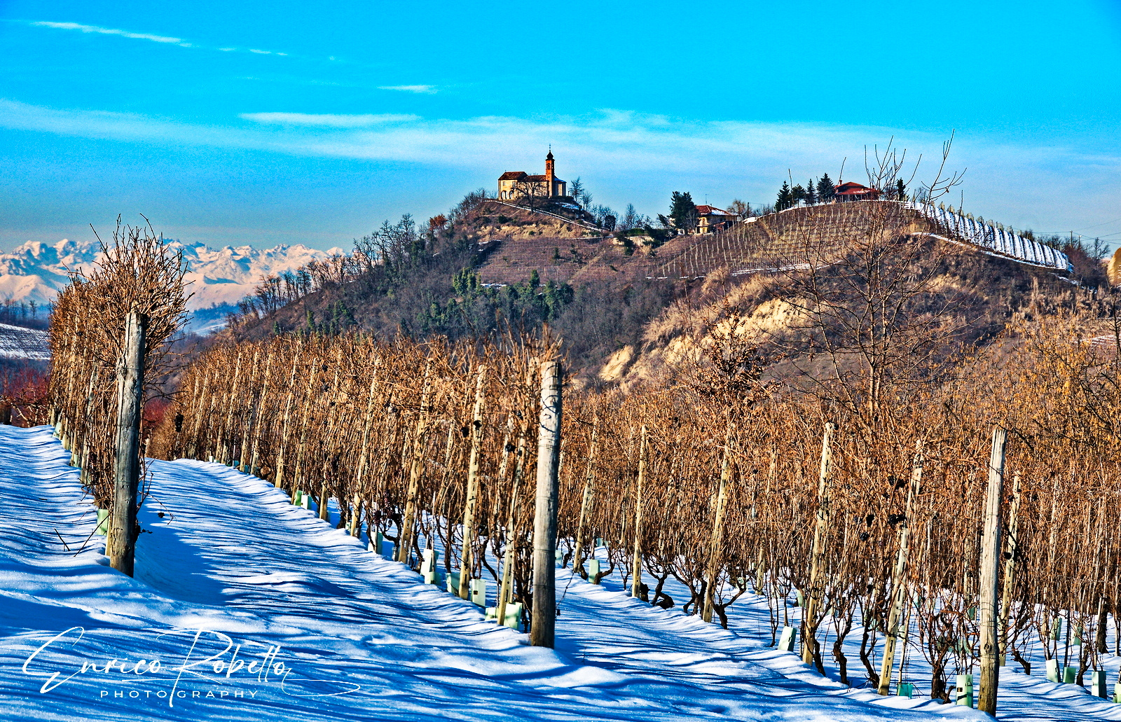 Vigneti nei dintorni di Castellinaldo, sul fondo la Chiesetta di San Servasio, Secolo XIV, Cuneo, Piemonte, Italia ----- Vineyards in the surroundings of Castellinaldo, in the background the small church of San Servasio, 14th century, Cuneo, Piedmont, Italy