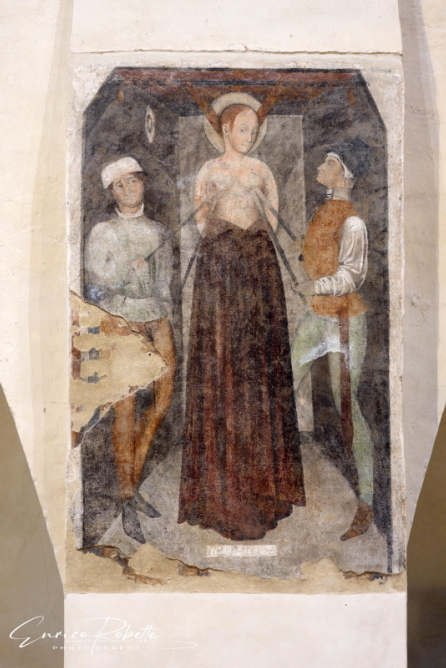 San Maurizio Canavese, la Chiesa Plebana, XI Secolo, Navata Centrale, primo pilastro, Sant'Agata ----- San Maurizio Canavese, the Plebeian Church, 11th Century, Central Nave, first pillar, Sant'Agata.
