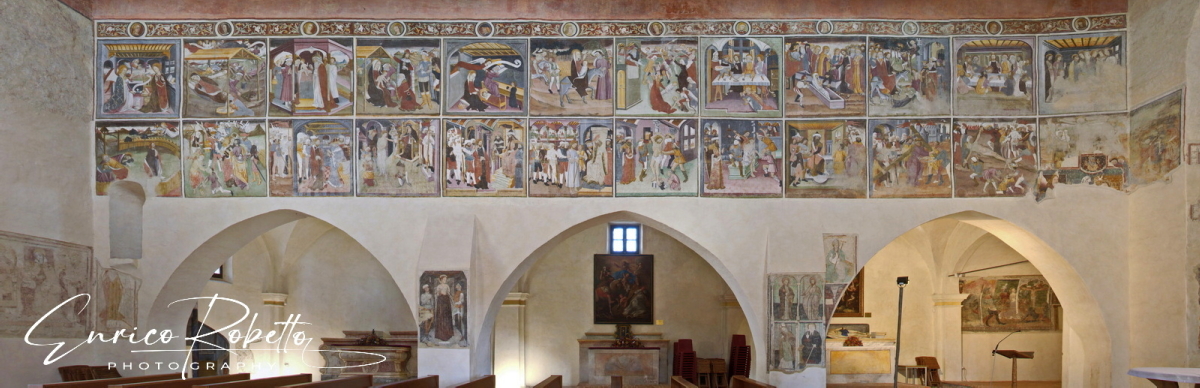 San Maurizio Canavese, la Chiesa Plebana, XI Secolo, affreschi detti il Ciclo dei Serra, eseguiti nel XIV Secolo ----- San Maurizio Canavese, the Plebeian Church, 11th Century, frescoes called the Serra Cycle, executed in the 14th Century.