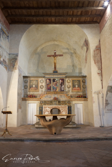 San Maurizio Canavese, la Chiesa Plebana, XI Secolo, Altare Maggiore e Abside ----- San Maurizio Canavese, the Plebeian Church, 11th Century, High Altar and Apse.