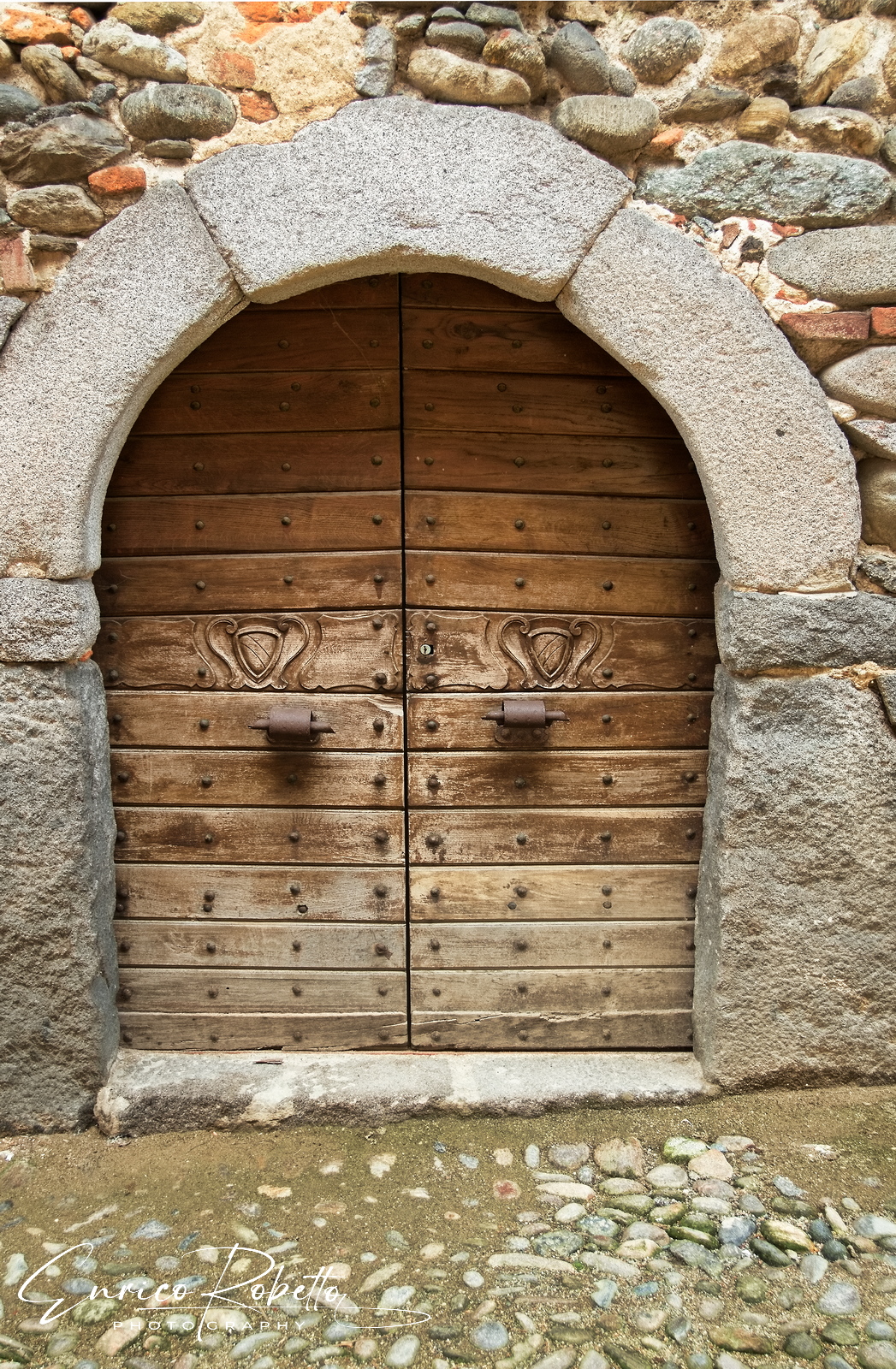 Ricetto di Candelo, XIII Secolo, particolare di una porta, Biella, Italia ----- Ricetto di Candelo, 13th Century, detail of a door, Biella, Italy
