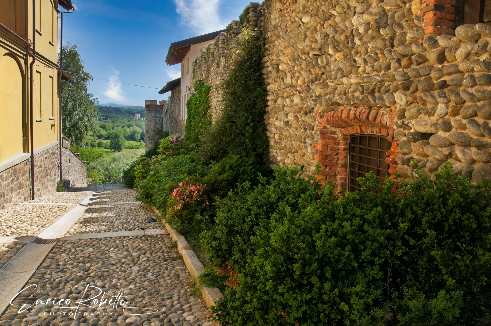 Ricetto di Candelo, XIII Secolo, sul fondo la Torre Nord, Biella, Italia ----- Ricetto di Candelo, 13th Century, the North Tower in the background, Biella, Italy