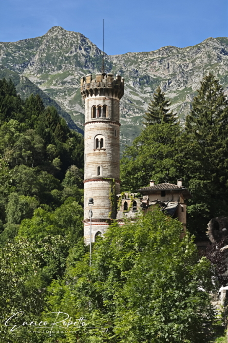 Via Giuseppe Mazzini, la Torre Guelfa vista dal Parco Comunale, Rosazza, Biella, Italia ----- Via Giuseppe Mazzini, the Guelph Tower seen from the Municipal Park, Rosazza, Biella, Italy