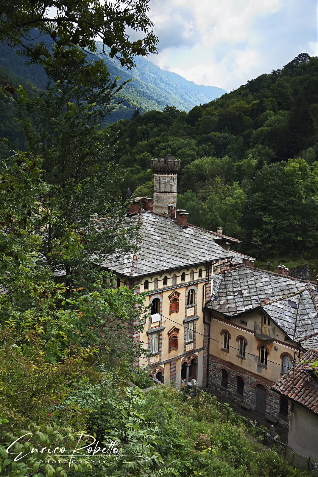Via Federico Rosazza, il Castello visto dalla parte alta del paese, Rosazza, Biella, Italia ----- Via Federico Rosazza, the Castle seen from the upper part of the town, Rosazza, Biella, Italy