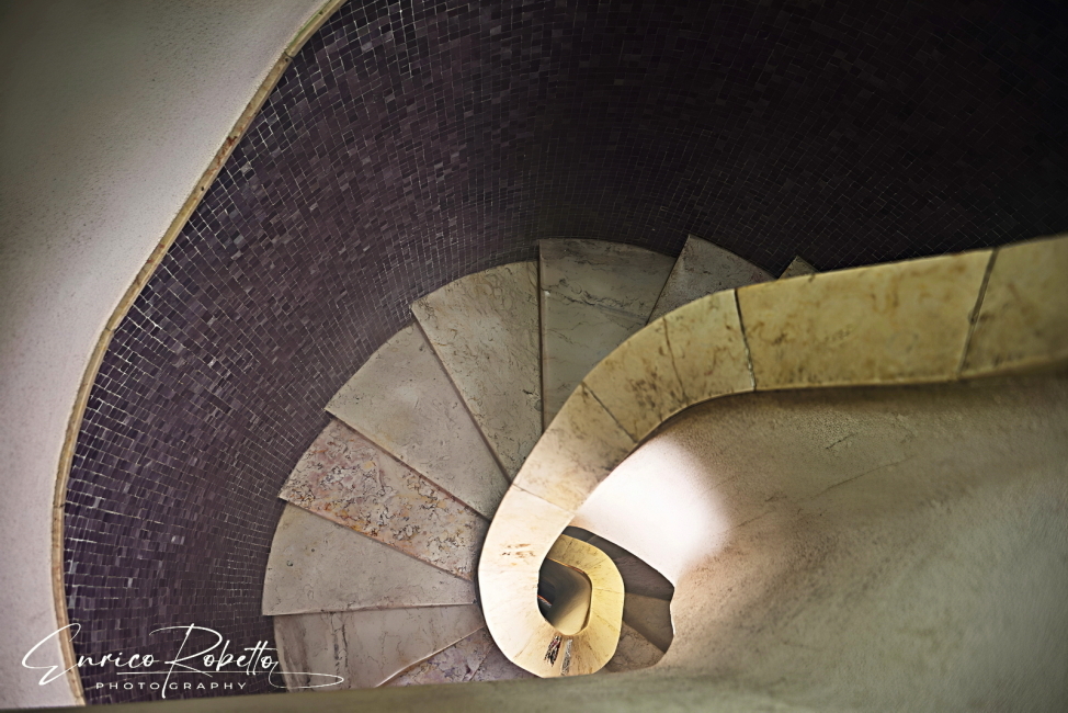 Ultimo tratto di scale per accedere alla terrazza della statua del Santuario de Cristo Rei, Lisbona, Portogallo ----- Last stretch of stairs to access the terrace of the statue of the Santuario de Cristo Rei, Lisbon, Portugal