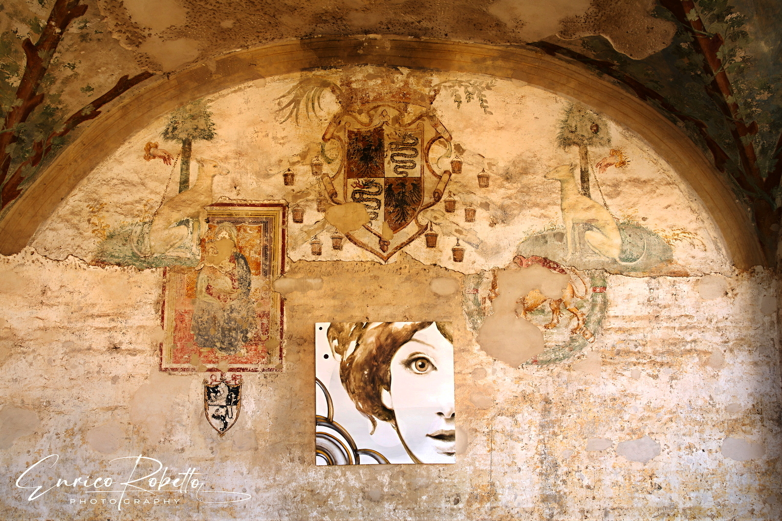 Soncino, la Rocca Sforzesca, Secolo XV affreschi lungo i camminamenti interni, Cremona, Italia ----- Soncino, the Sforza Castle, 15th century frescoes along the internal walkways, Cremona, Italy