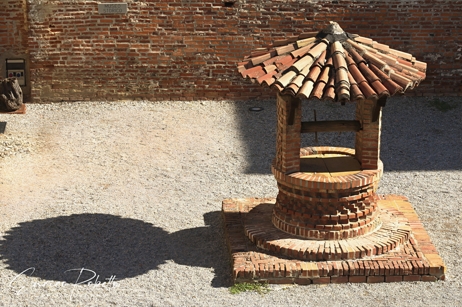 Soncino, la Rocca Sforzesca, Secolo XV, vista sul cortile interno, il pozzo, Cremona, Italia ----- Soncino, the Sforza Castle, 15th century, view of the internal courtyard, the well, Cremona, Italy
