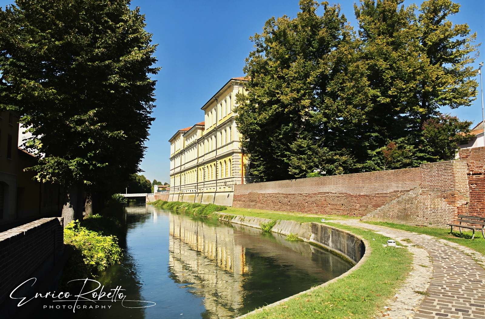 Soncino, muri esterni della fortificazione lungo Via Damiano Chiesa, Cremona, Italia ----- Soncino, external walls of the fortification along Via Damiano Chiesa, Cremona, Italy