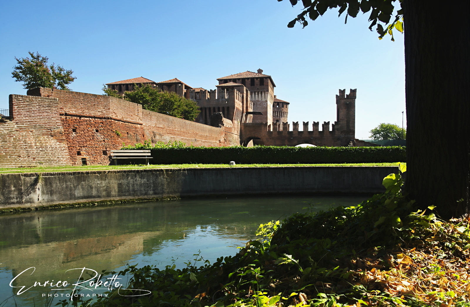 Soncino, la Rocca Sforzesca e il fossato esterno, Secolo XV, vista da Via Damiano Chiesa, Cremona, Italia ----- Soncino, the Sforza Castle and the external moat, 15th century, seen from Via Damiano Chiesa, Cremona, Italy