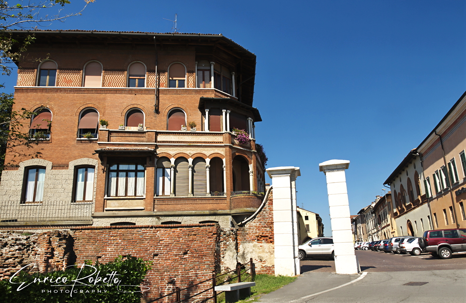 Soncino, Casa degli Azzanelli vista dal Viale della Rimembranza, Cremona, Italia ----- Soncino, Azzanelli House seen from the Viale della Rimembranza, Cremona, Italy