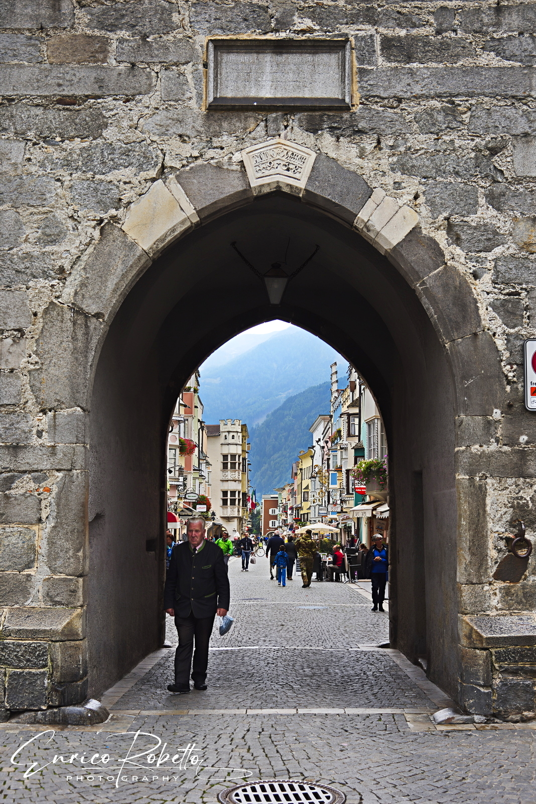 Lungo Via Città Vecchia, passaggio sotto la Torre delle Dodici, Vipiteno, Bolzano, Italia ----- Along Via Città Vecchia, passage under the Torre delle Dodici, Vipiteno, Bolzano, Italia