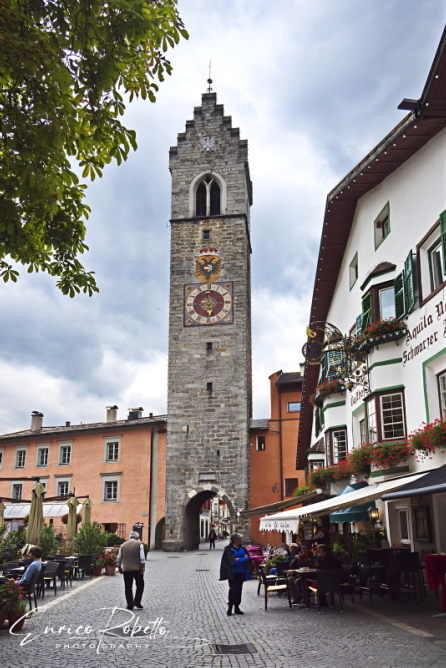 Lungo Via Città Vecchia, Piazza Città-Stadplatz, con la Torre delle Dodici, Vipiteno, Bolzano, Italia ----- Along Città Vecchia Street, Piazza Città-Stadplatz, with the Torre delle Dodici, Vipiteno, Bolzano, Italy