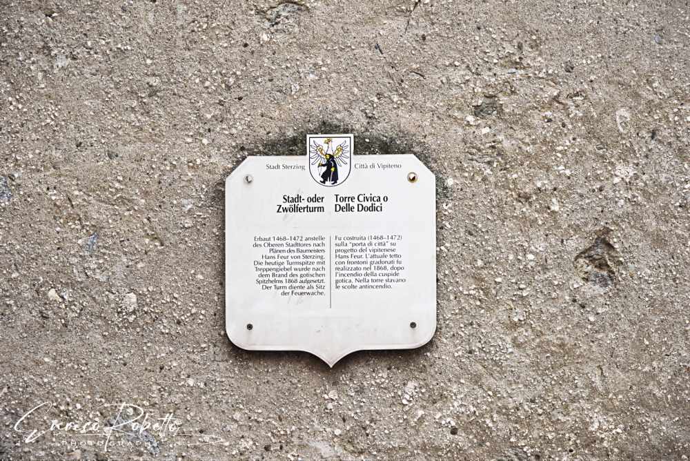 Lungo Via Città Nuova, la Torre delle Dodici, Vipiteno, Bolzano, Italia ----- Along Città Nuova Street, the Tower of the Twelve, Vipiteno, Bolzano, Italy