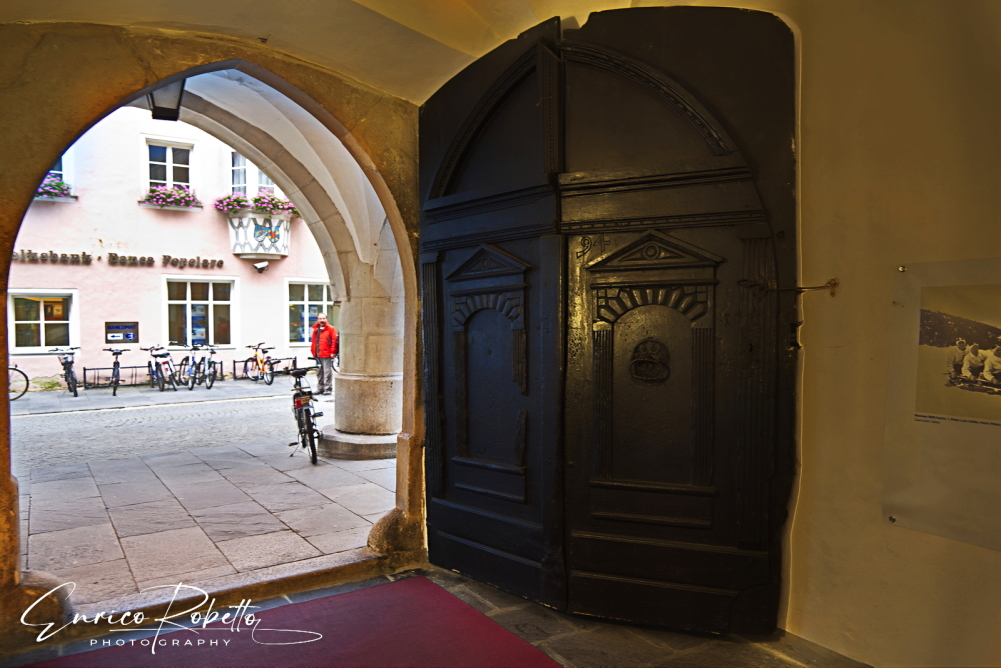 Lungo Via Città Nuova, portale di un palazzo, Vipiteno, Bolzano, Italia ----- Along Città Nuova Street, portal of a building, Vipiteno, Bolzano, Italy