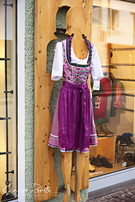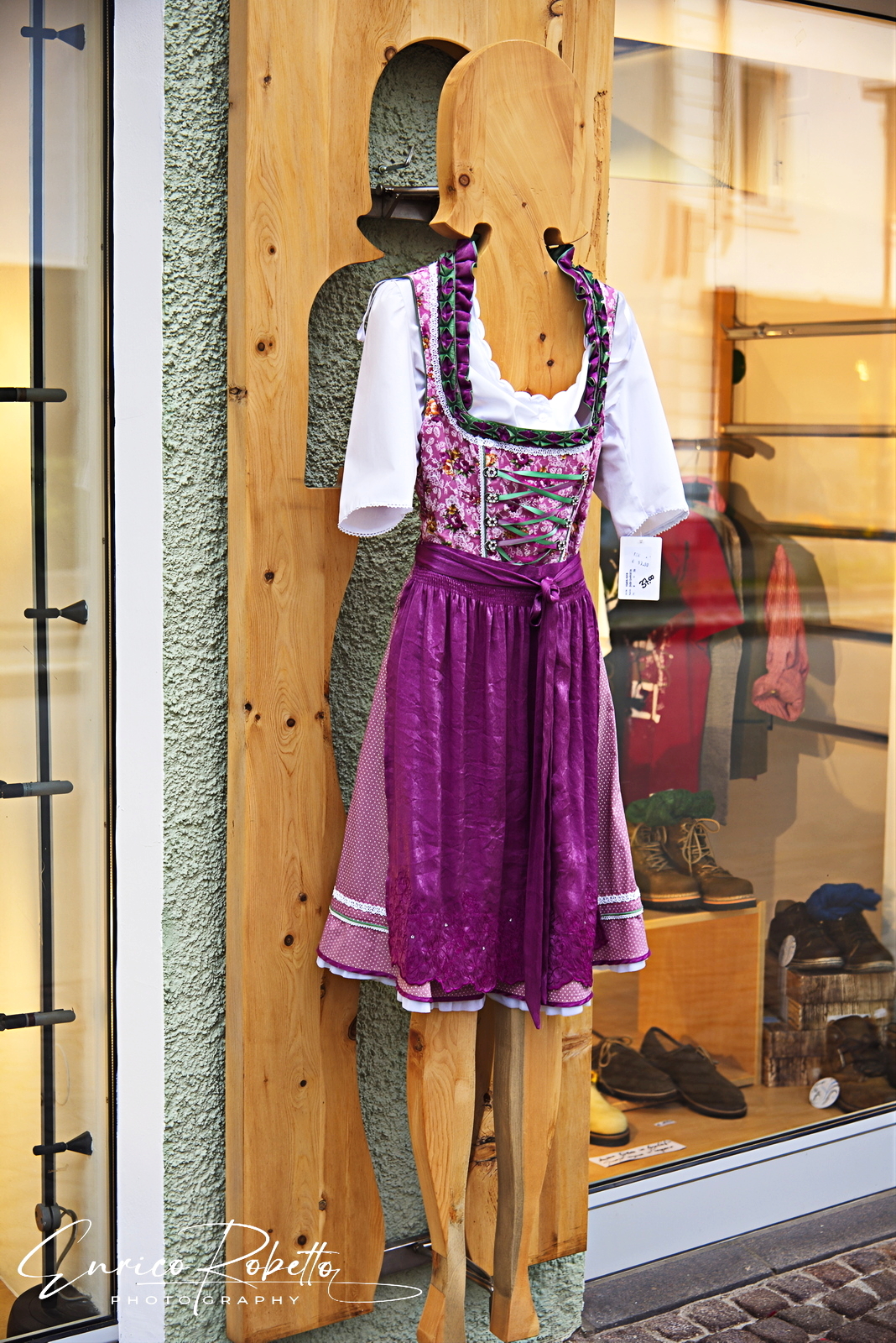 Lungo Via Gansbacher, costume tipico, Vipiteno, Bolzano, Italia ----- Along Gänsbacher Street, traditional costume, Sterzing, Bolzano, Italy